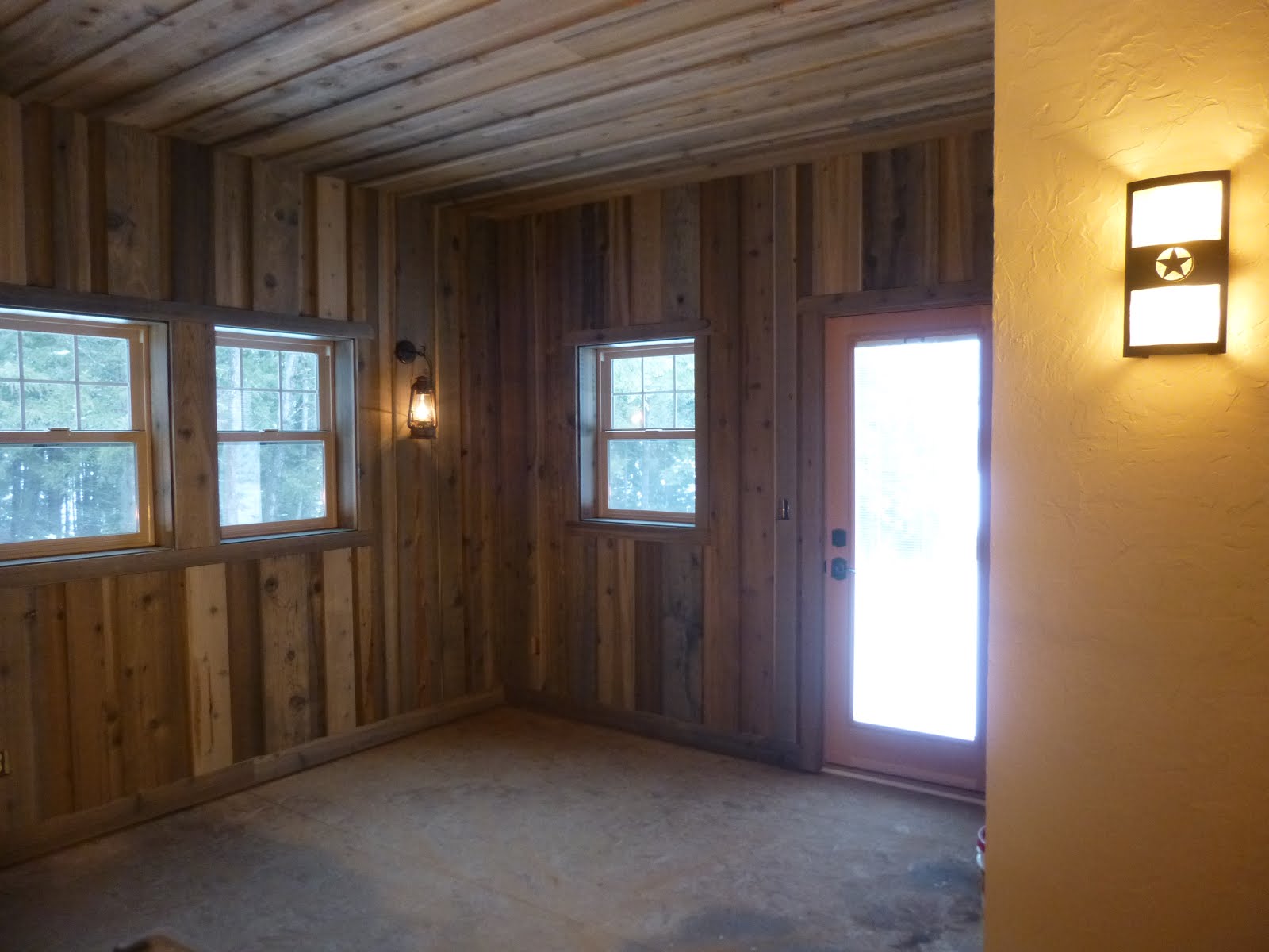 We think it turned out pretty cool. The ceiling is done with the same wood, but board and batts. We still have the closet ceiling to finish and doors.